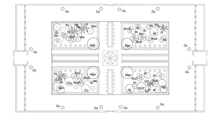 Orientalisch-Islamischer Garten Orientalisch-Islamischer Garten 2006BerlinGartenschaugelände; Mitarbeit an:VorentwurfEntwurfAusführungsplanungBauleitung von TeilaspektenAusstellung und KatalogTextebei Louafi Landschaftsarchitekten Pflanzkonzept Entwurf Seitenwand/ Proportionsstudie
