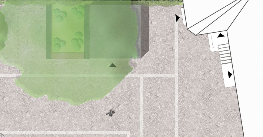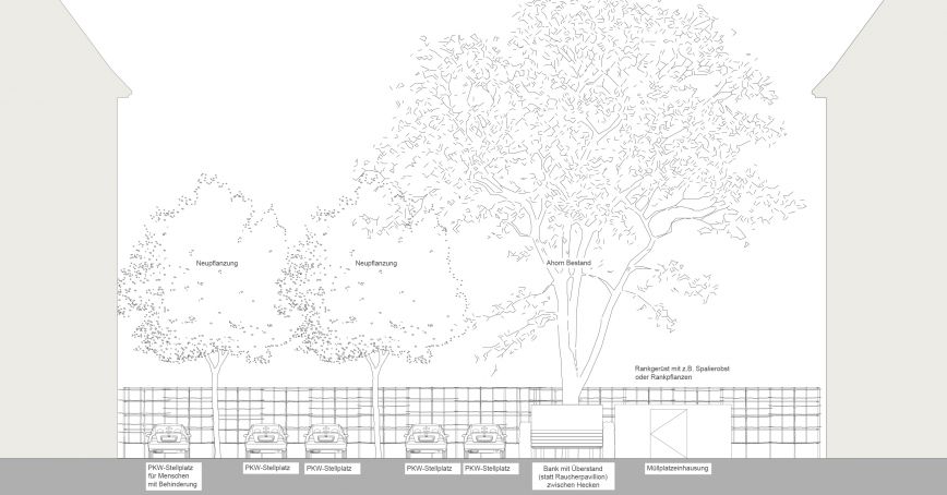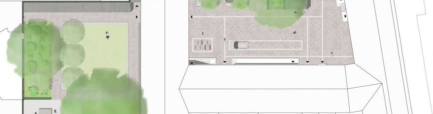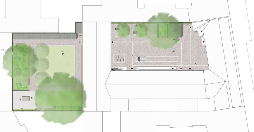 Eine ehemalige Gemeindeschule Ludwig Hoffmanns (1896-1924 Stadtbaurat Berlins) wird zum Ordnungsamt. Bauplastiker war hier Ignatius Taschner. In diesem denkmalgeschützten Kontext werden die beiden Höfe barrierefrei mit neuen Nutzungen belegt. In den Freianlagen werden vorgefundene Materialien und Strukturen in Abstimmung mit dem Denkmalschutz mit neuen Nutzungen kombiniert und modern interpretiert.